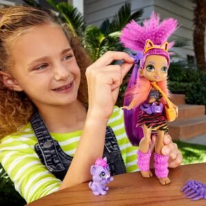 Cave Club Roaralai Doll (8 � 10-inch, Purple Hair) Poseable Prehistoric Fashion Doll with Dinosaur Pet and Accessories, Gift for 4 Year Olds and Up [Amazon Exclusive]